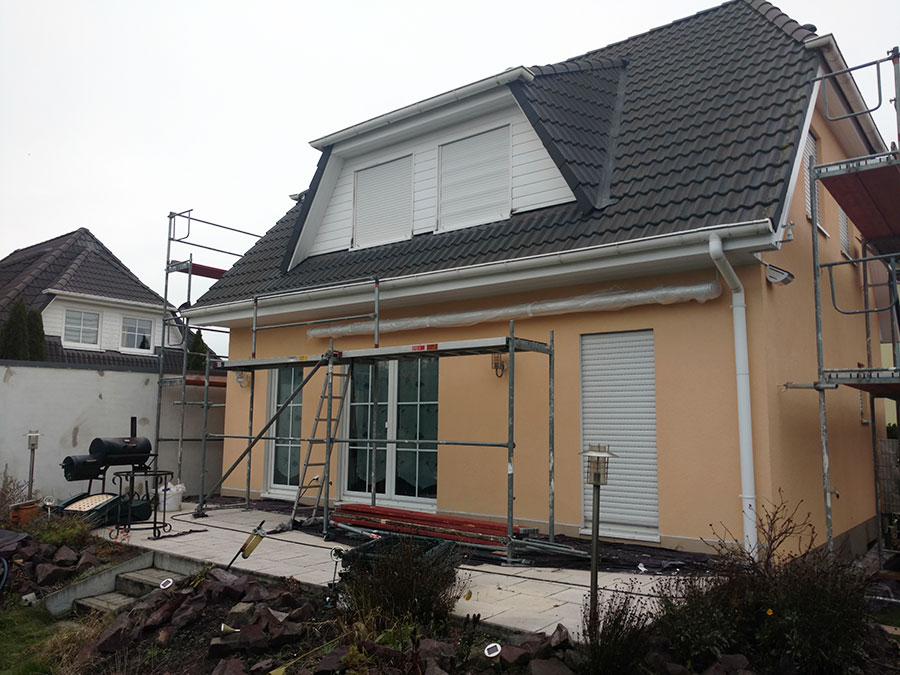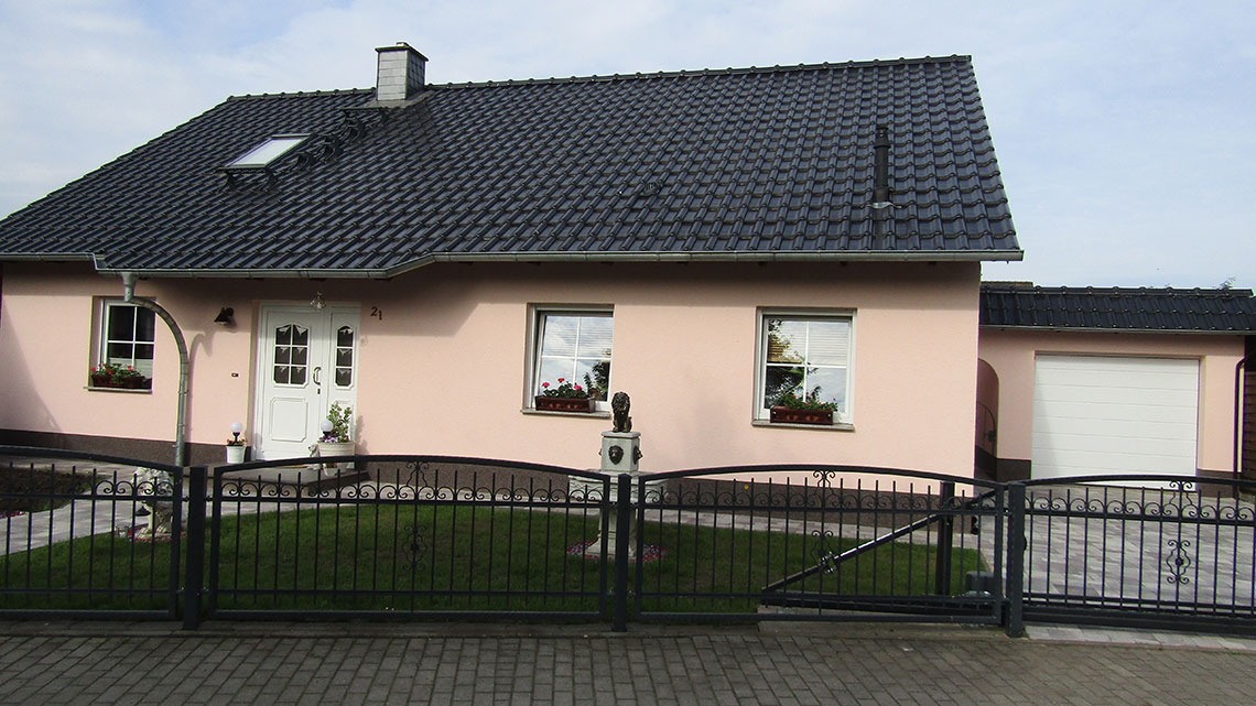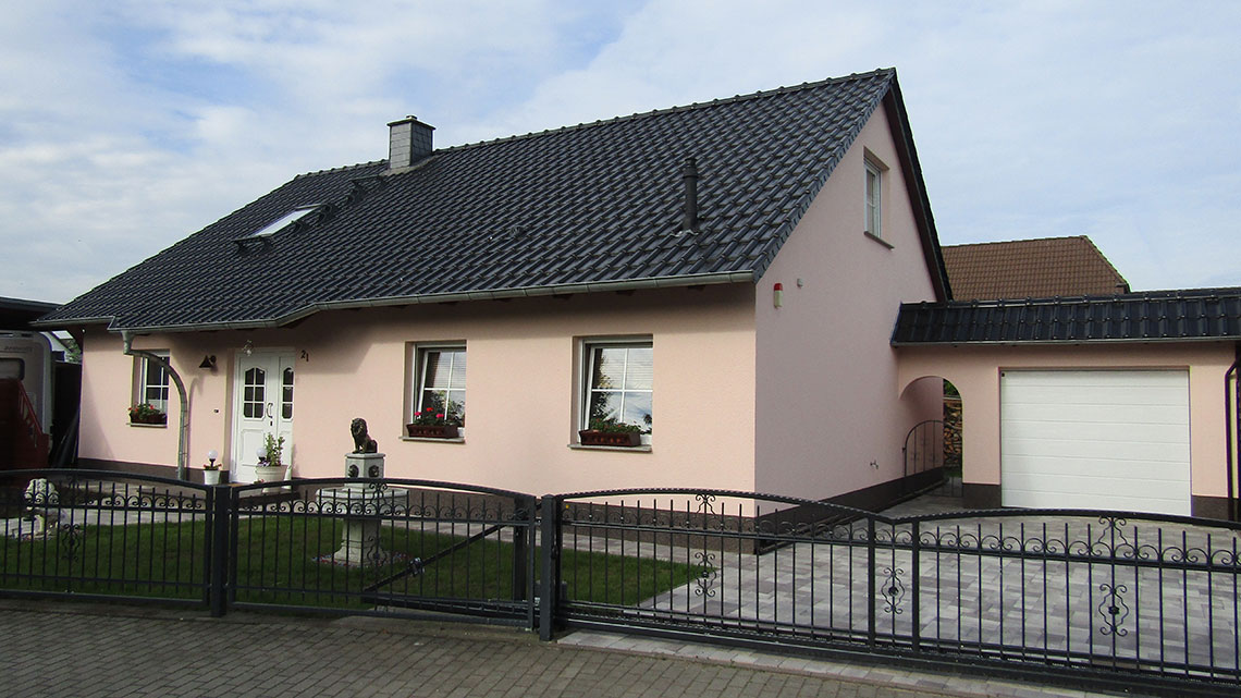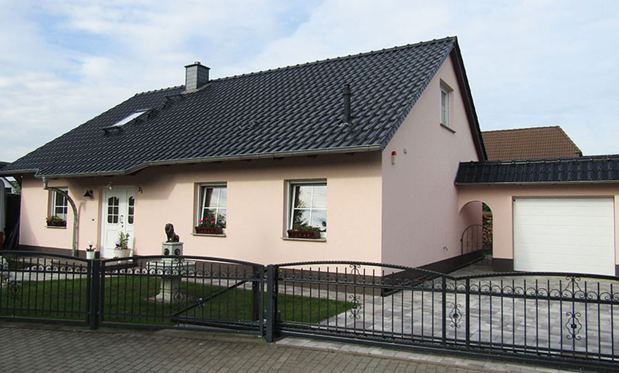 Bei diesem Einfamilienhaus haben wir zuerst den Putz saniert. Mehrere Risse machten dies erforderlich. Danach wurde das Haus mit einem neuen Anstrich versehen.