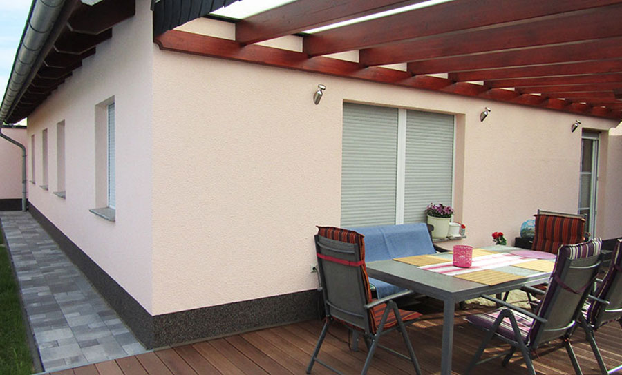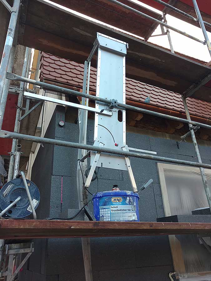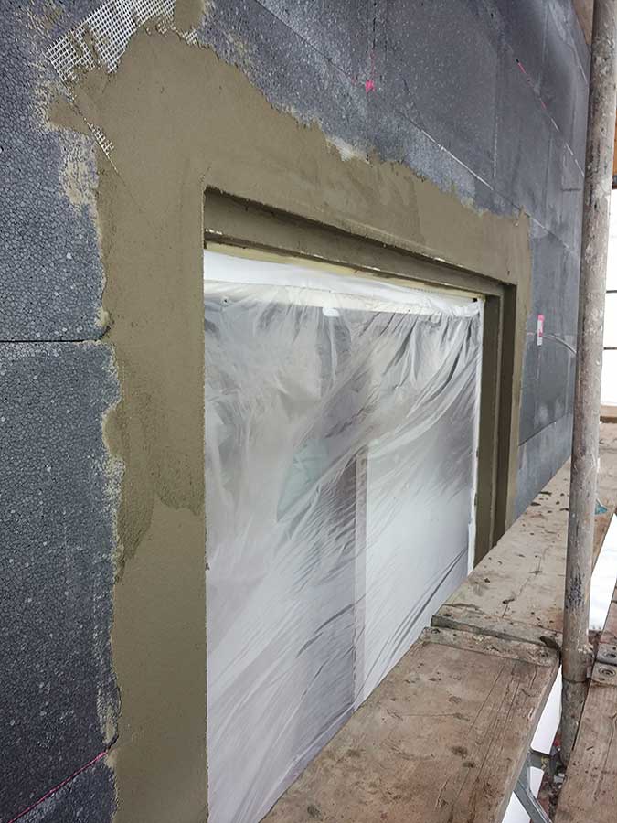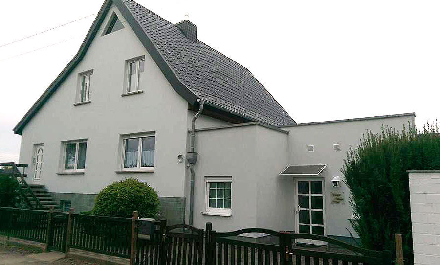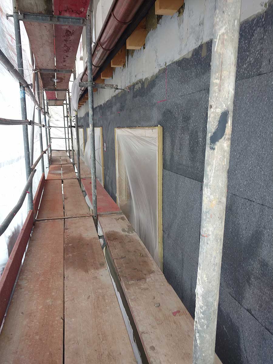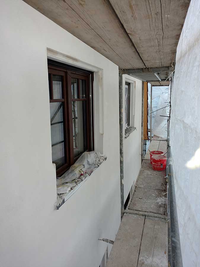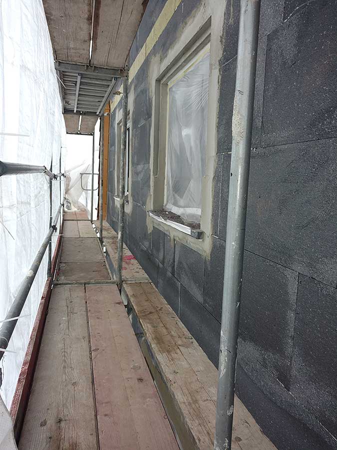 Hier wurde ein Wärmedämmverbundsystem angebracht, verputzt und gestrichen.