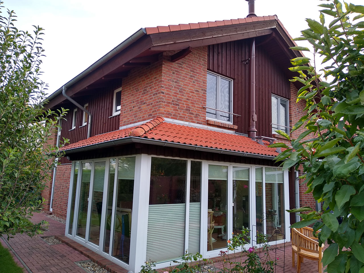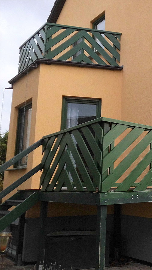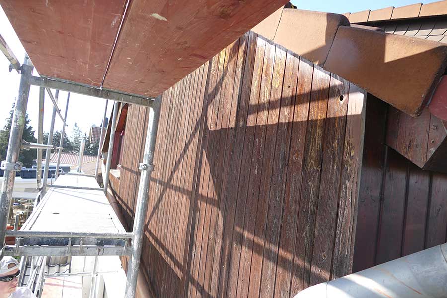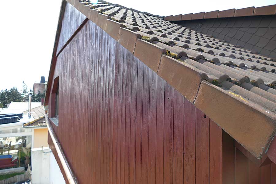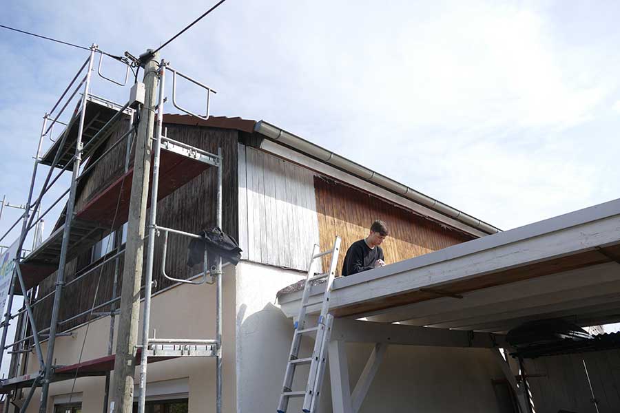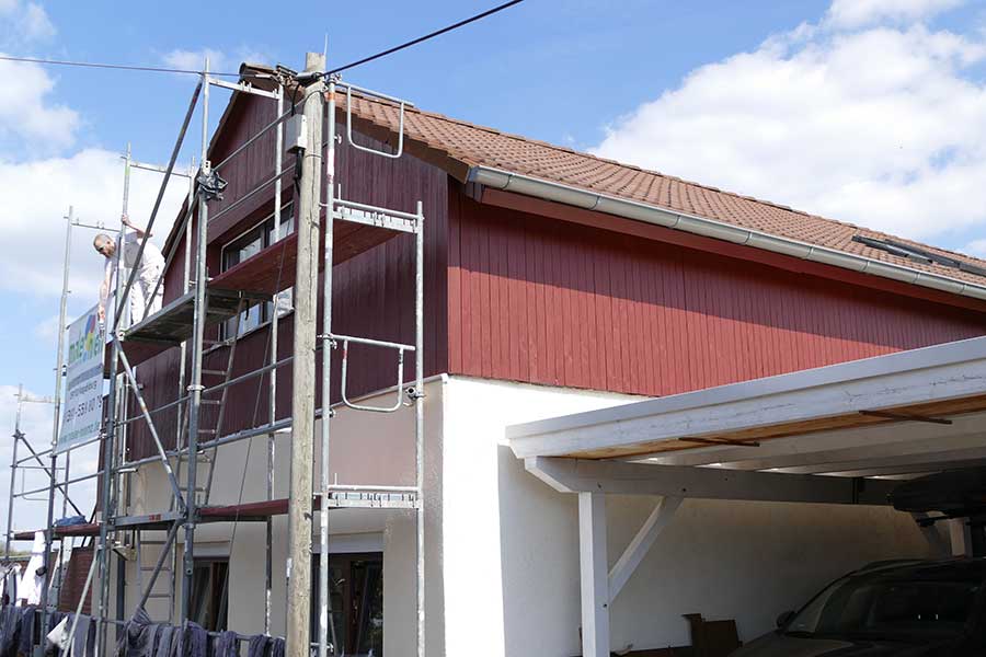 Hier wurde das Holz der Fassade mit einer neuen Lasur gestrichen.