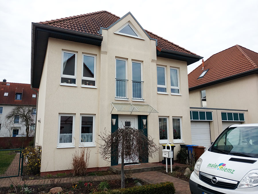 Auch hier wurde von uns der Putz saniert und ein neuer Fassadenanstrich aufgebracht.
