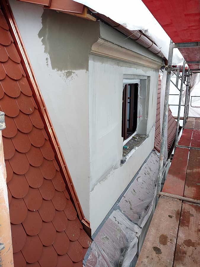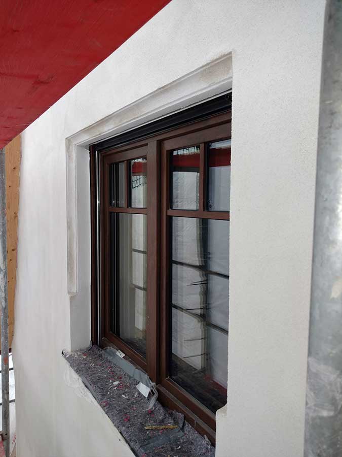 Die Fensterprofile wurden auf Wunsch des Kunden von Hand gefertigt. So sollte die historische Fassade möglichst originalgetreu wiederhergestellt werden.