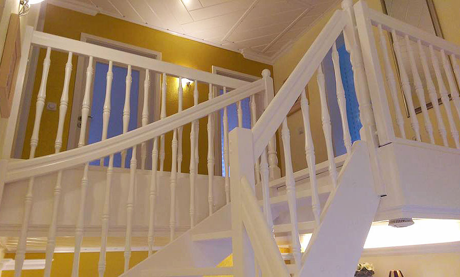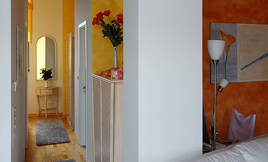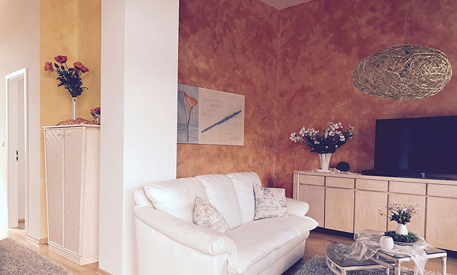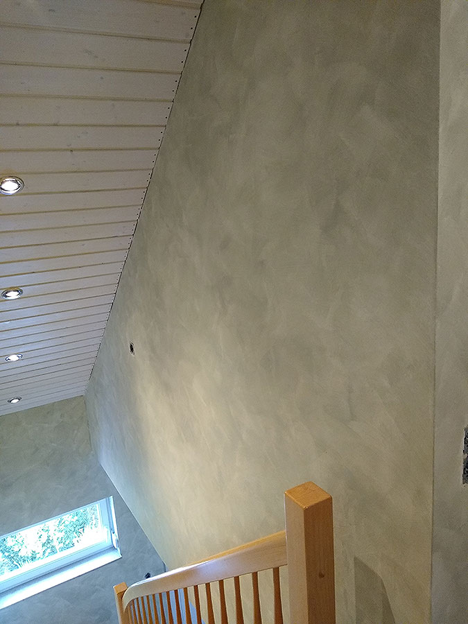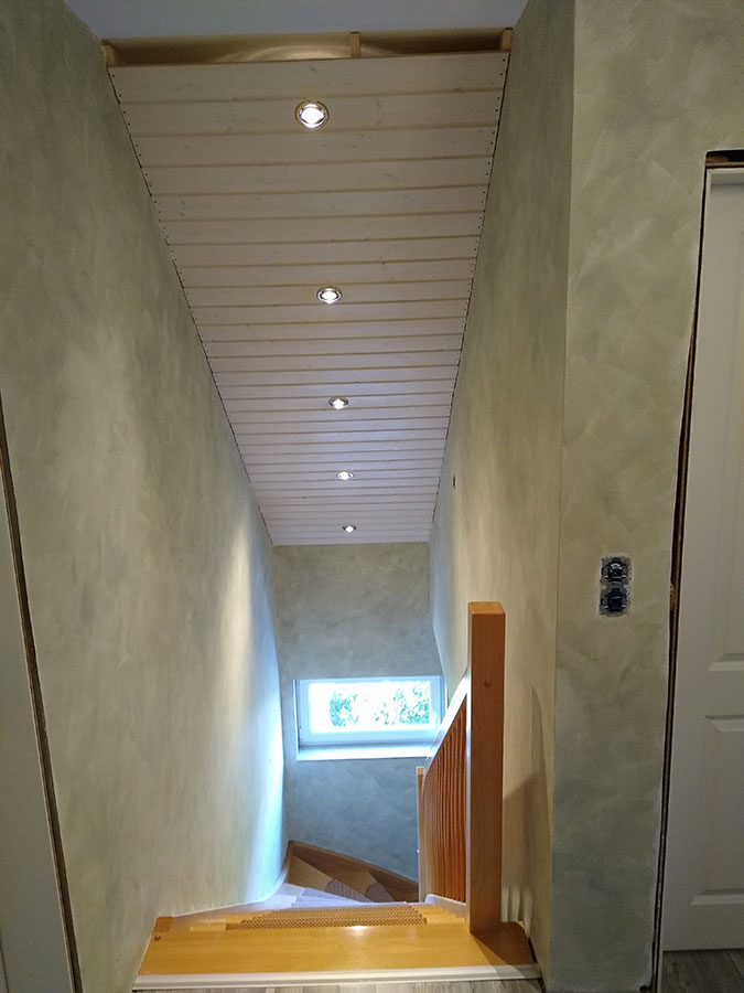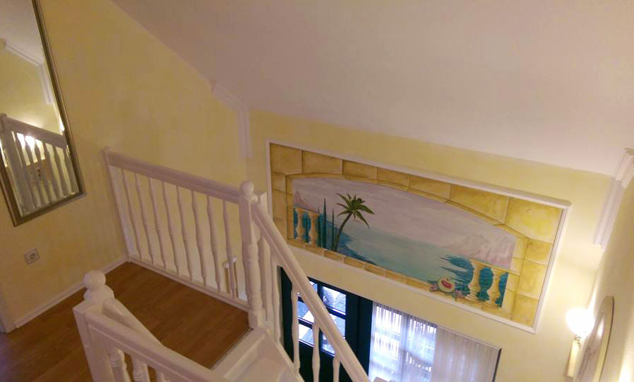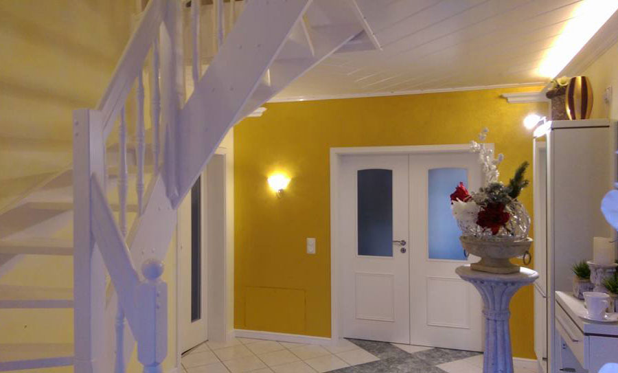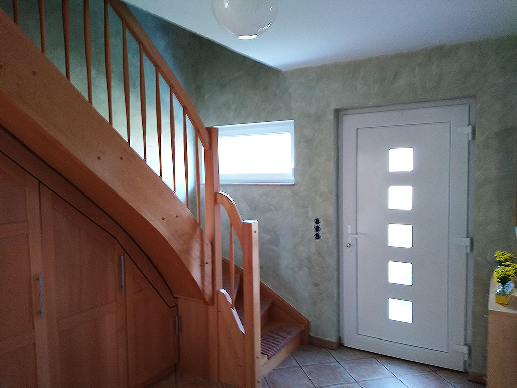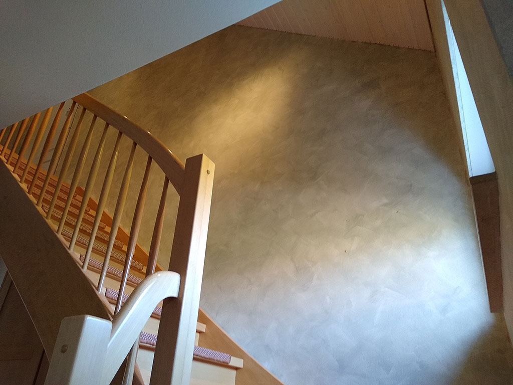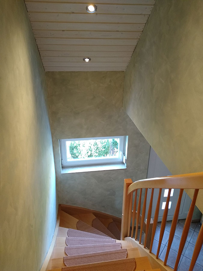 Treppenaufgang und Flur wurden von uns mit Lasurtechnik verschönert. Dabei kam Brillux-Farbe zum Einsatz.