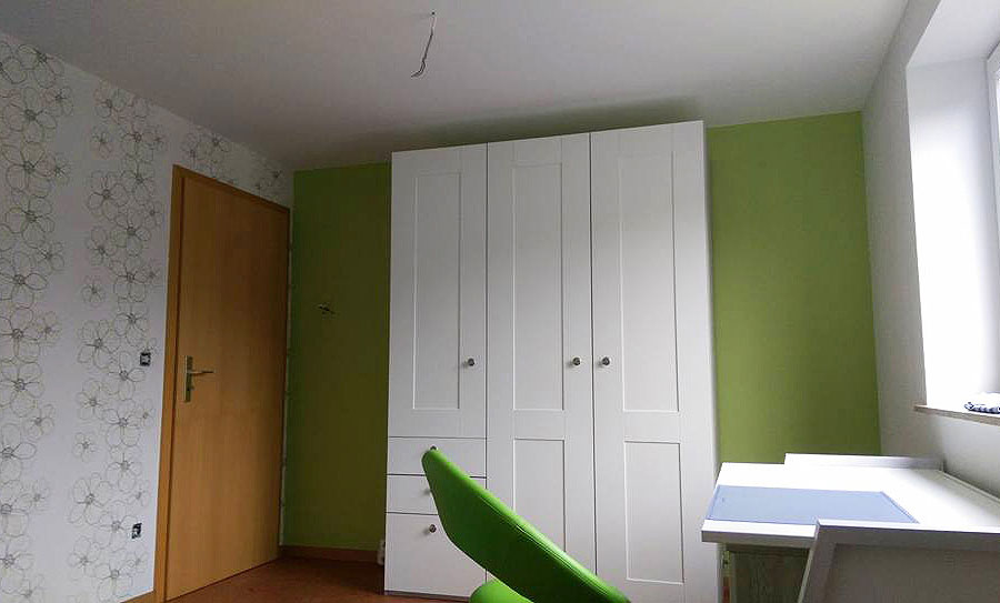 Aus Alt mach Neu! Bei diesem Einfamilienhaus stand eine Generalüberholung an. Im ersten Schritt wurden Wände und Decken mit modernem Glattvlies ausgestattet um Unebenheiten zu beseitigen und Grundlage für hochwertige Tapeten und Farben zu schaffen, welche wir im nächsten Schritt an die Wände brachten. Im Ergebnis sehen wir frische Farben und ein schickes Design in dem man sich einfach wohl fühlt.